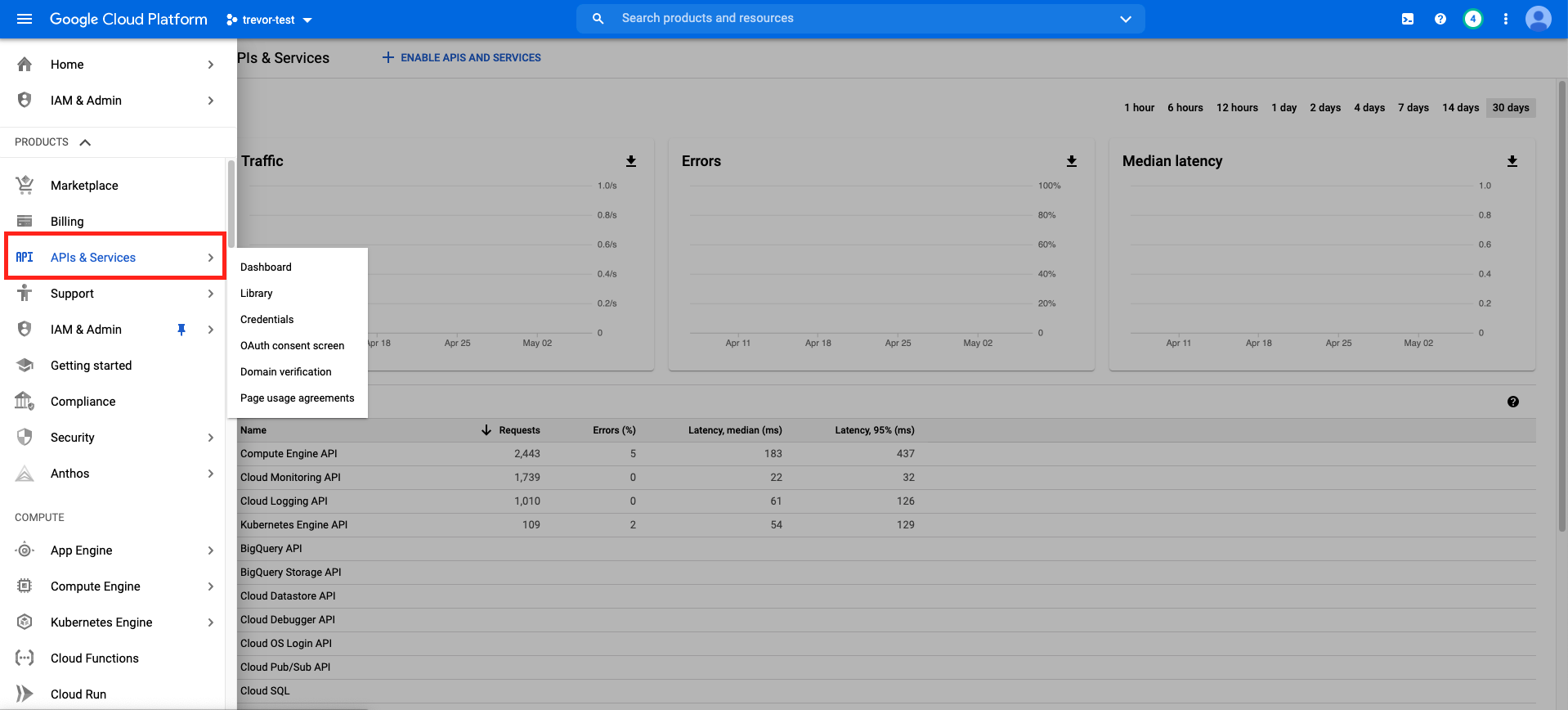 To use Porter on GCP, you must first enable some APIs on your project.- Navigate to the APIs & Services tab of your project.